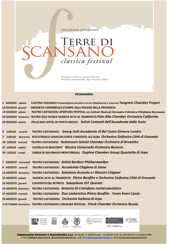 Terre di Scansano Classica Festival è ormai una manifestazione di rilievo in una regione quale la Toscana dove la Cultura, con la C maiuscola, riceve certamente più attenzioni che in altre aree d’Italia.