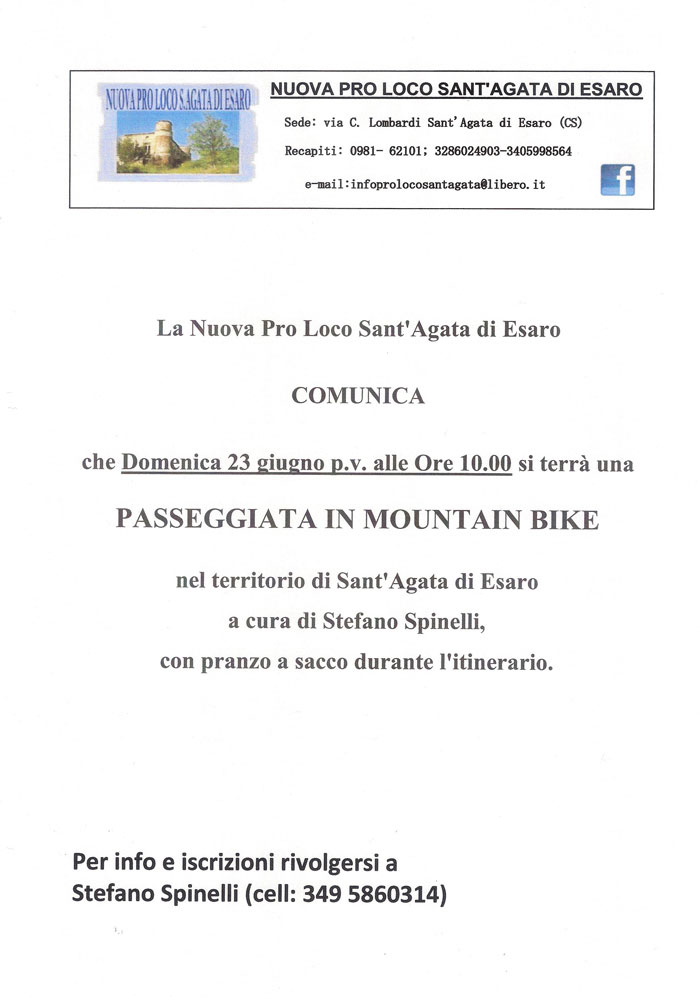 La Nuova Pro Loco di Sant'Agata di Esaro segnala l'iniziativa: