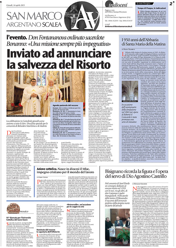 Avvenire Notizie dalla Diocesi 16 aprile 2015
